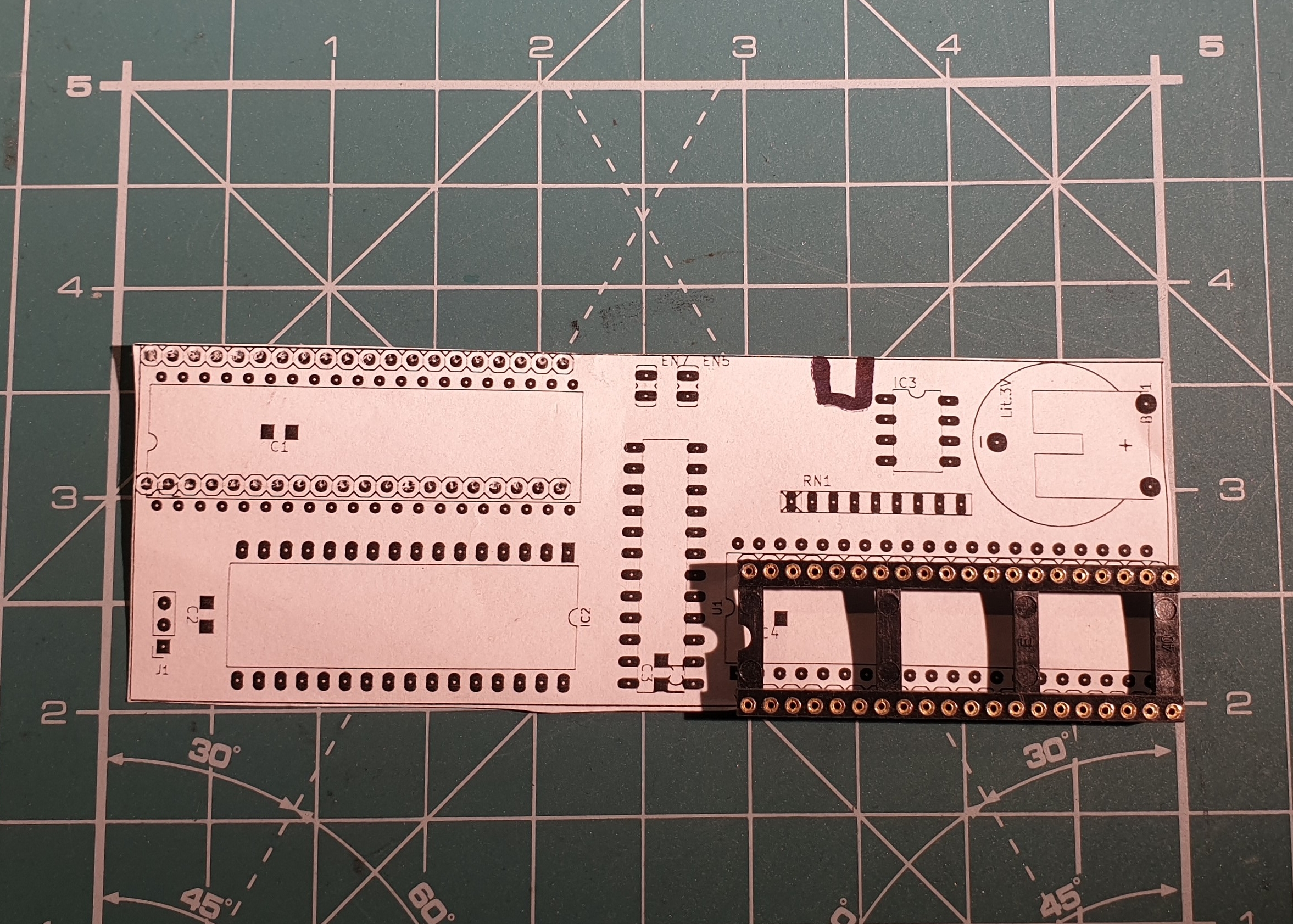 Next step is necessary if you have not socket ICs. In my case I desoldered CPU, PIA and small MMU and socketed. Pin 6 and 16 of MMU should be cambered to up and soldered to wired on memory board. The same with 16 pad of MMU socket (see schematic):